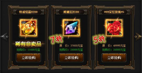 【活动内容】活动期间,稀有道具每天限购一次,超低价格,不容错过!